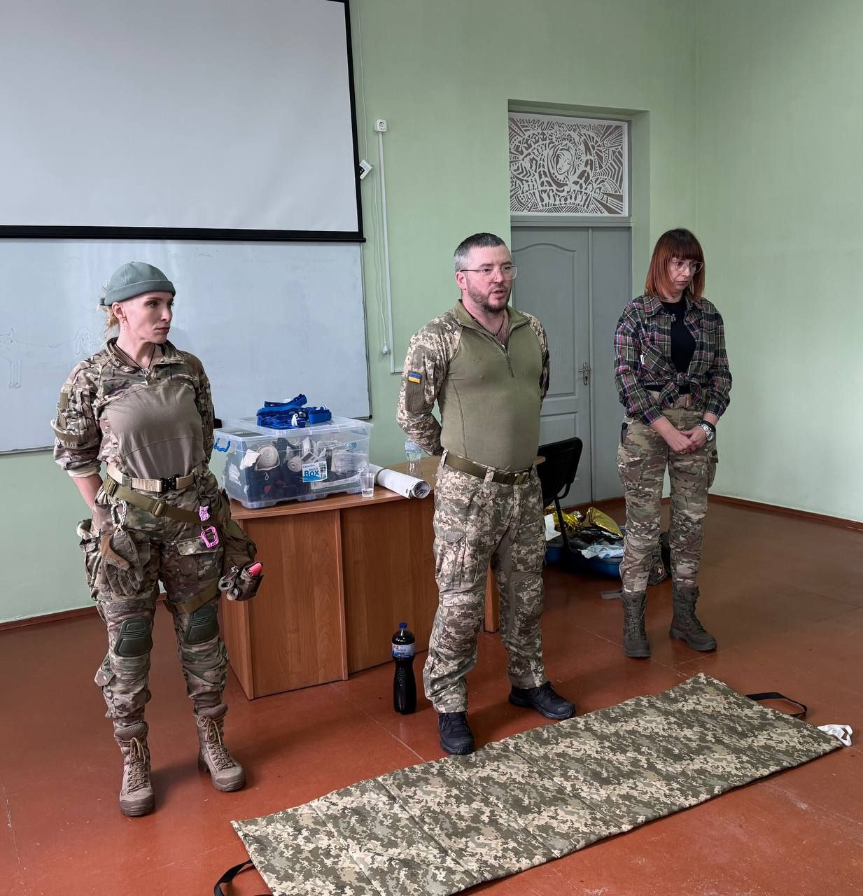 Тренінг провели високопрофесійні фахівці: Бабенко Сергій – медик 1 роти 642-го окремого зенітно-кулеметного батальйону; Катерина і Юлія – інструкторки з тактичної медицини добровольчого формування Черкаської територіальної громади та Черкаського інституту міста.